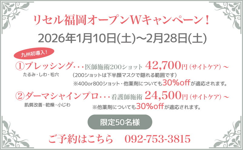 体への負担を最小限に抑えながら、見た目の美しさだけでなく、内面からの再生を重視し心身の健康へ導きます。 リセル福岡は、一人ひとりのお悩みに向き合い、年齢や性別を問わず、どなたでも安心して通っていただけるエイジングケア専門クリニックです。